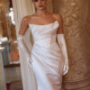 Gefertigt aus luxuriösem glänzendem Satin, vereint dieses Kleid Minimalismus und Glamour – perfekt für Bräute, die Wert auf klare Linien und zeitlose Eleganz legen.