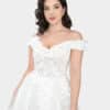 Das Brautkleid ,,Flower 2“ von Irvalda Brautmode Wien ist ein traumhaft romantisches und zugleich luxuriöses Kleid, das durch seine spektakulären 3D-Blüten besonders hervorsticht. Das Off-Shoulder Oberteil mit feinen Blütenapplikationen schafft eine feminine, zarte Silhouette und betont wunderschön die Schultern und das Dekolleté. Die kunstvoll platzierten 3D-Blumen verleihen dem Kleid Tiefe, Struktur und eine elegante Couture-Optik.