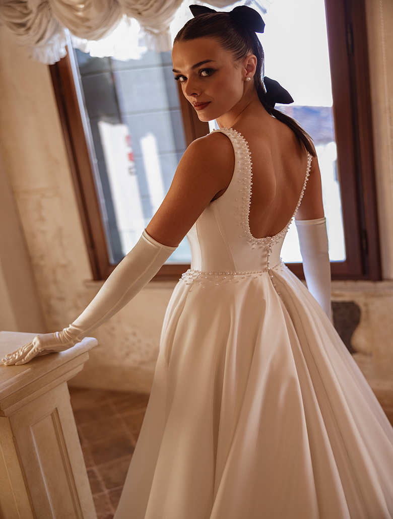 Dieses Modell ist die perfekte Wahl für Bräute, die sich einen glamourösen und zugleich klassischen Auftritt wünschen.